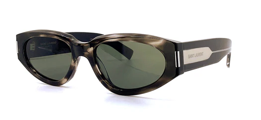 Modern, sculptural, and effortlessly cool — these Saint Laurent oval sunglasses bring a bold silhouette to any look. Crafted from thick, high-shine acetate in a smoky black finish, they feature a sleek wrap-inspired shape that feels both fashion-forward and timeless. The wide temples are finished with the signature Saint Laurent plaque for a polished, iconic touch. A statement accessory that elevates every outfit with quiet luxury.