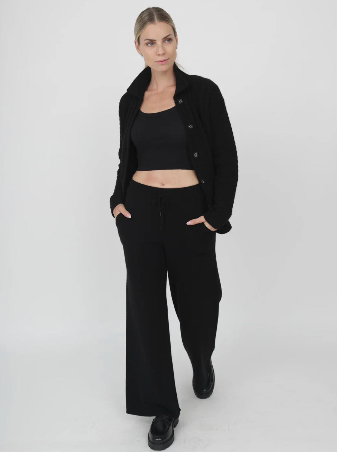 Crafted from pure Mongolian cashmere, the Allegra Pants offer fluid movement and effortless comfort. The wide-leg silhouette, elastic waistband, and adjustable drawstring create a relaxed yet elevated fit, while side pockets add subtle practicality. Pair them with the Allegra Cardigan for a complete set or wear them solo for travel, lounging, or everyday ease.