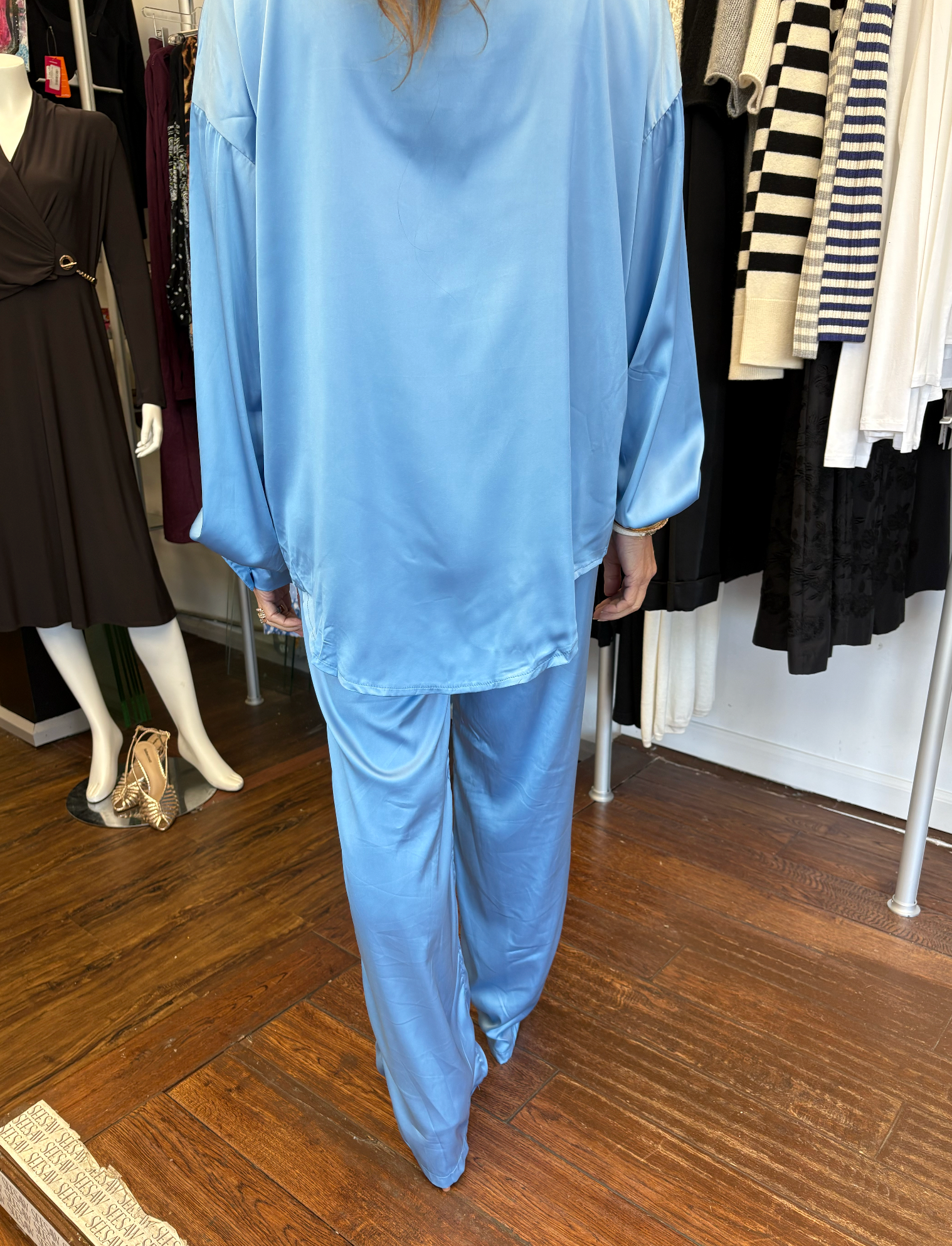 Elevate your everyday look with this fluid satin button-down, designed with an effortless drape and a soft, polished finish. Featuring relaxed sleeves, front flap pockets, and a longline silhouette, it’s the perfect blend of comfort and sophistication. Style it tucked, loose, or layered for a chic day-to-night look.