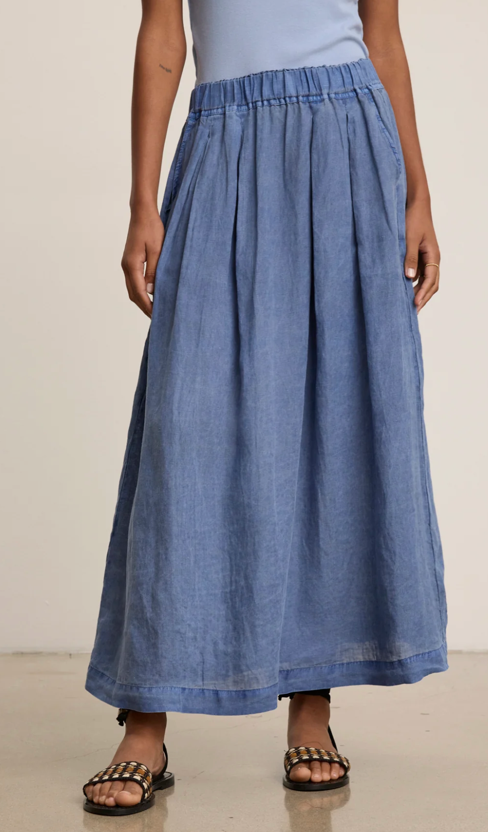 Crafted from breathable woven linen, the Linda Skirt delivers effortless elegance with everyday ease. This timeless maxi features a relaxed A-line silhouette and a comfortable pull-on fit, making it perfect for warm-weather dressing. The elastic waistband ensures all-day comfort, while functional slash pockets add practicality without compromising style. Lightweight, airy, and endlessly versatile, it’s a staple you'll reach for season after season.