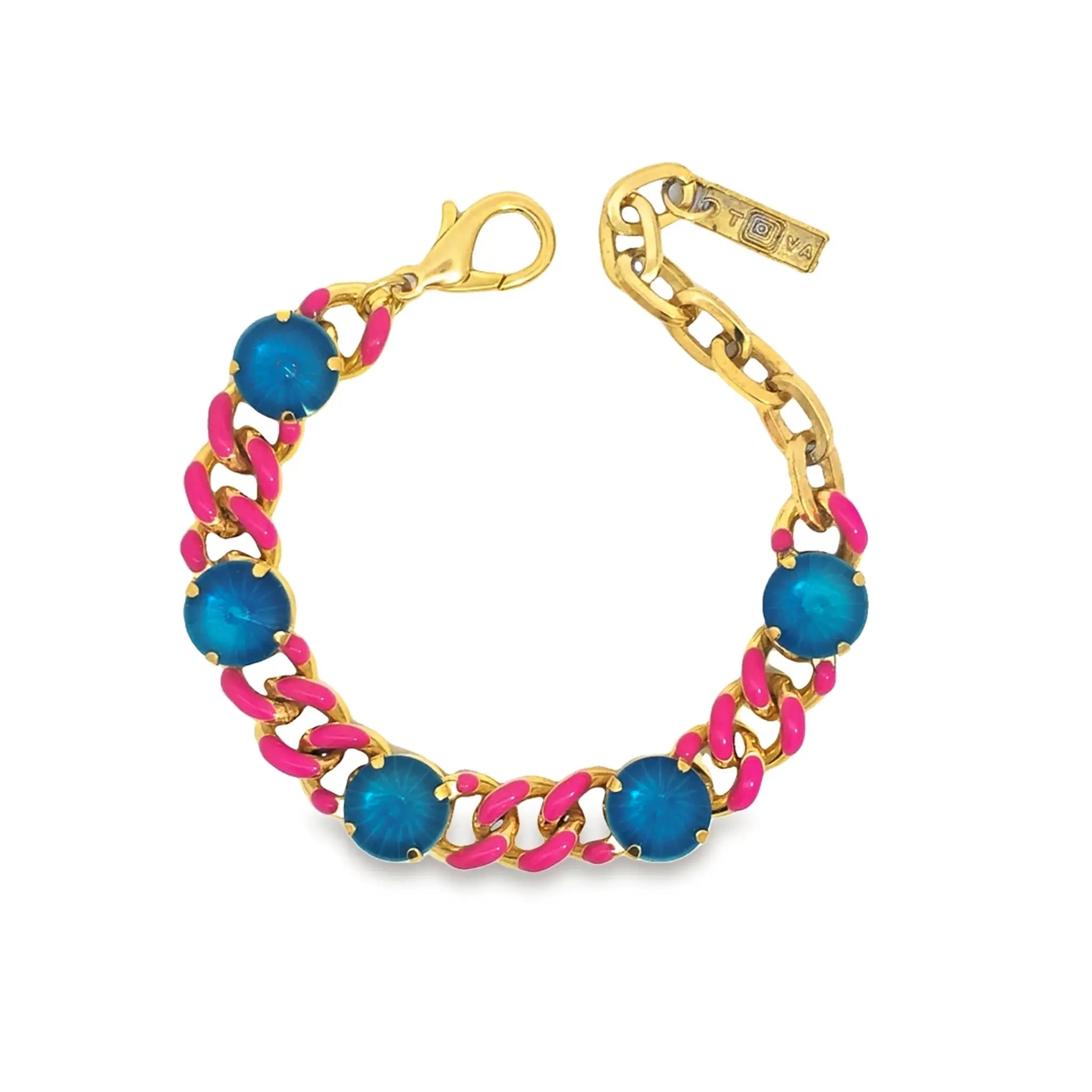 • Add a pop of playful sparkle to your wrist stack with the Galileu Bracelet in Candy Crush. This cosmic-inspired piece blends vibrant enamel, brilliant crystals, and antique gold plating for a look that feels both artful and elevated. Handcrafted in Canada with exceptional attention to detail, it’s the perfect way to brighten any outfit—whether you’re dressing up, mixing your metals, or layering your favorite everyday bracelets.
