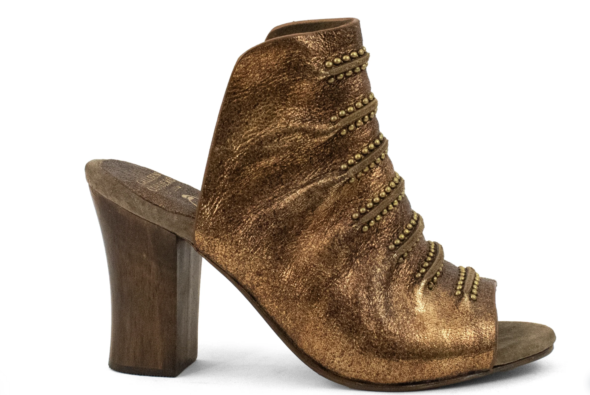 - Hand-sculpted all-wood heel