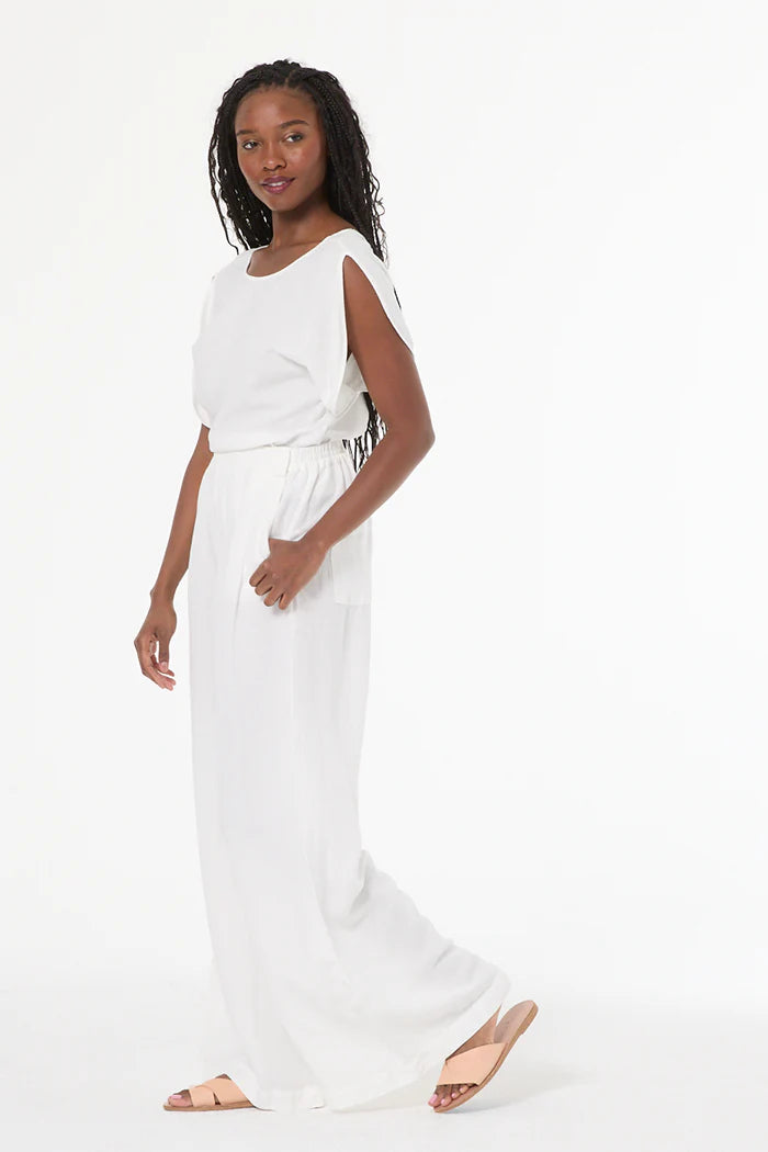 Effortlessly chic with comfort intertwined, the Bina Wide Leg Pant is the perfect draped wide leg pant to style with ease. Designed with a relaxed silhouette, this pull-on style features a flattering elasticized waistband, side and back pockets, and a fluid wide leg that moves beautifully with the body.