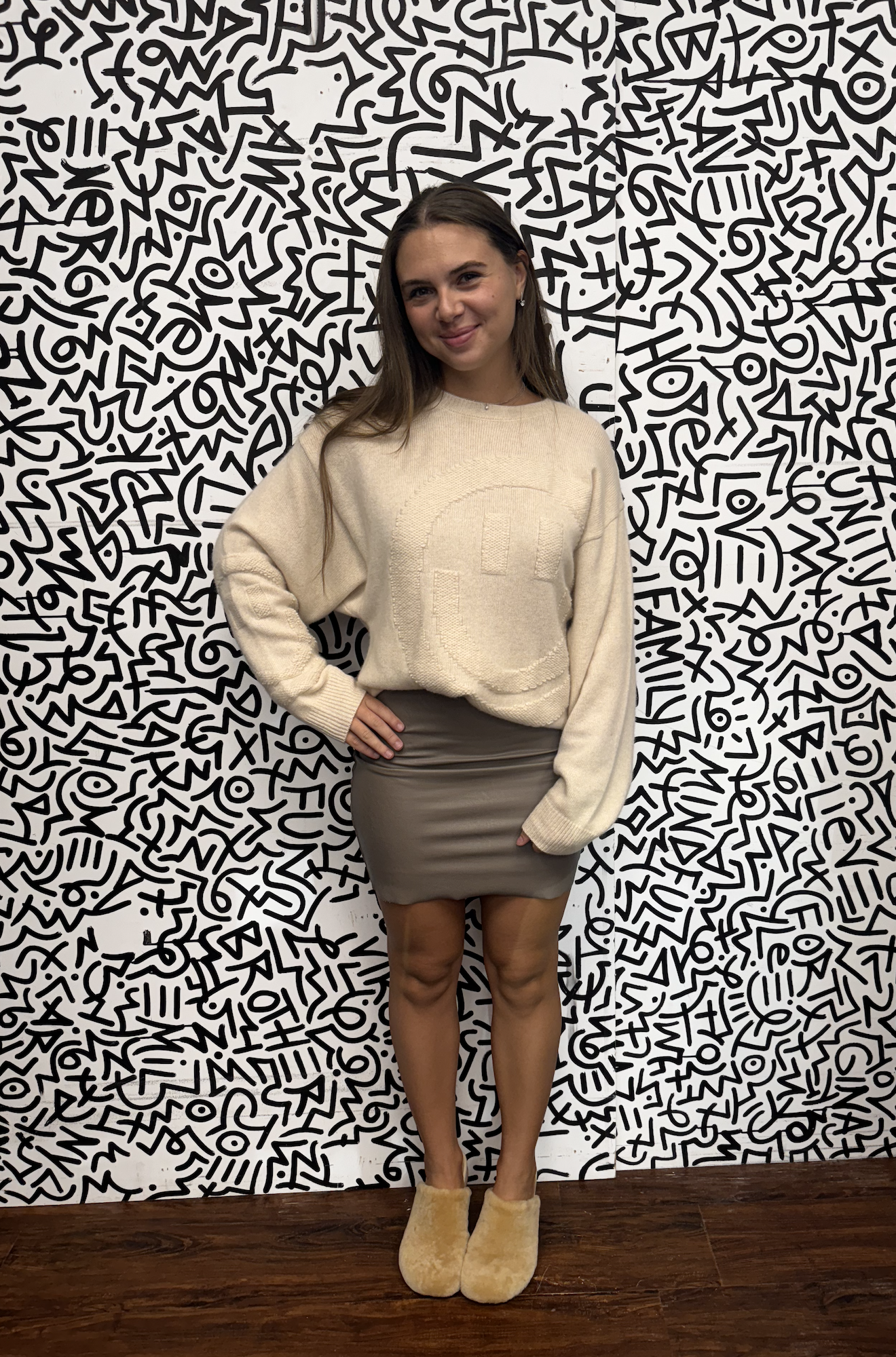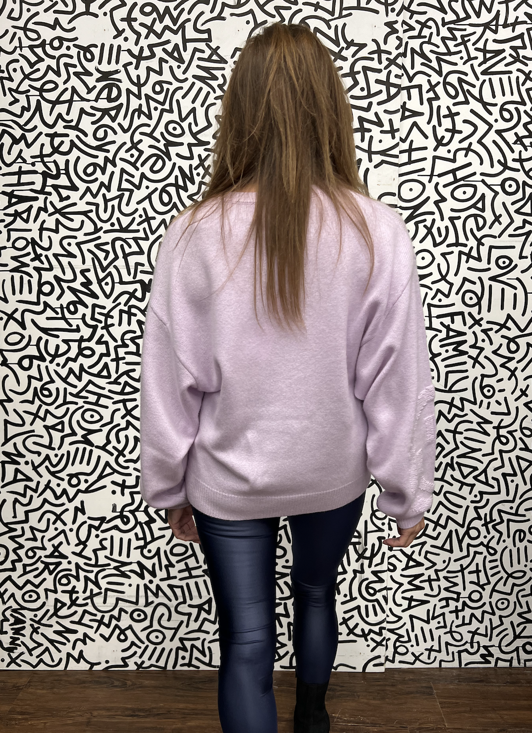 A soft pop of pastel that elevates any wardrobe. This lavender knit sweater features a textured embossed design across the front and sleeves, bringing a modern, dimensional touch to a classic cozy silhouette. Relaxed through the body with a refined ribbed trim, it’s the perfect blend of comfort and chic.