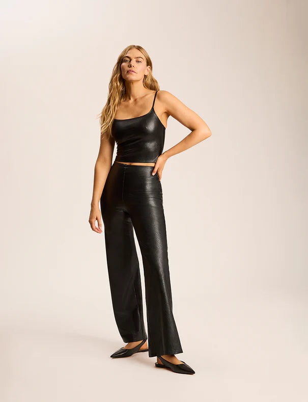 Commando’s Faux Leather Cami Crop Top is crafted from their fan-favorite four-way stretch faux leather, offering a sleek, sculpted fit with exceptional comfort and recovery. Designed with adjustable straps and raw-cut edges for a smooth, modern finish, this crop top transitions effortlessly from office chic to evening sleek. Pair it with trousers, denim, or layered looks for endlessly elevated styling.