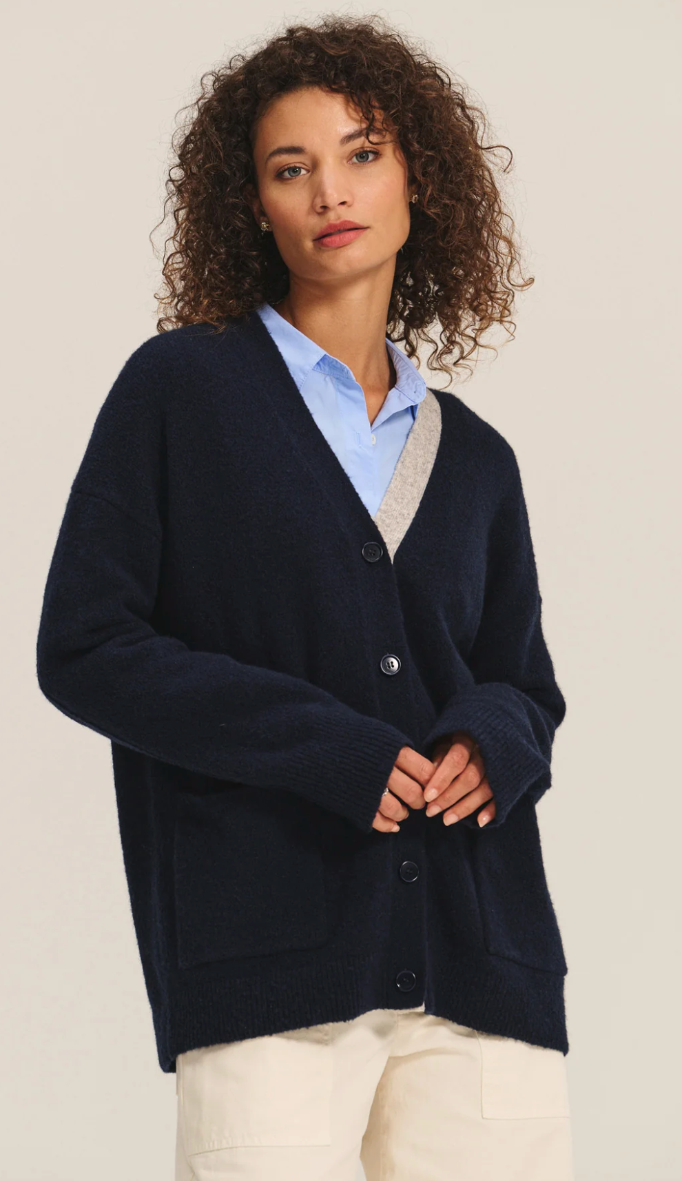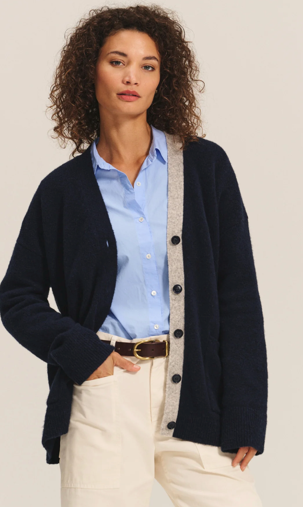 The Cameron Cardi is the perfect blend of cozy comfort and elevated everyday style. Crafted from a plush wool blend with yak for extra softness, this cardigan drapes beautifully with its relaxed fit and drop shoulders. A modern color-block stripe adds a subtle statement, while front patch pockets and a five-button closure bring practicality and polish. Effortless to layer and endlessly wearable, it’s the versatile knit your wardrobe didn’t know it needed.